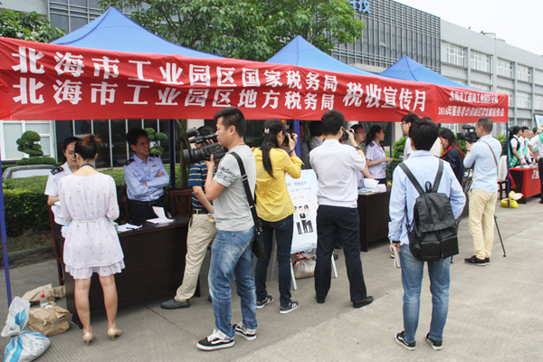2016年4月19日,北海市工業(yè)園區(qū)國稅局、地稅局、工商局工業(yè)園區(qū)分局、農(nóng)業(yè)銀行北海分行走進北海工業(yè)園區(qū),在中國電子北海產(chǎn)業(yè)園現(xiàn)場為企業(yè)宣講營改增、解讀稅收優(yōu)惠政策、服務(wù)非公有制經(jīng)濟發(fā)展及金融服務(wù)。