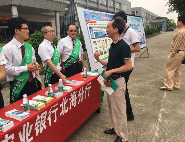 金融服務(wù)助力園區(qū)企業(yè)。配合營改增及雙創(chuàng)活動,農(nóng)業(yè)銀行北海分行主動走入園區(qū),宣傳金融服務(wù)政策,為園區(qū)進出口企業(yè)國際貿(mào)易給予最便利的結(jié)算及優(yōu)惠,為輕資產(chǎn)企業(yè)量身定造最便捷的融資渠道,助力解決園區(qū)企業(yè)資金需求。