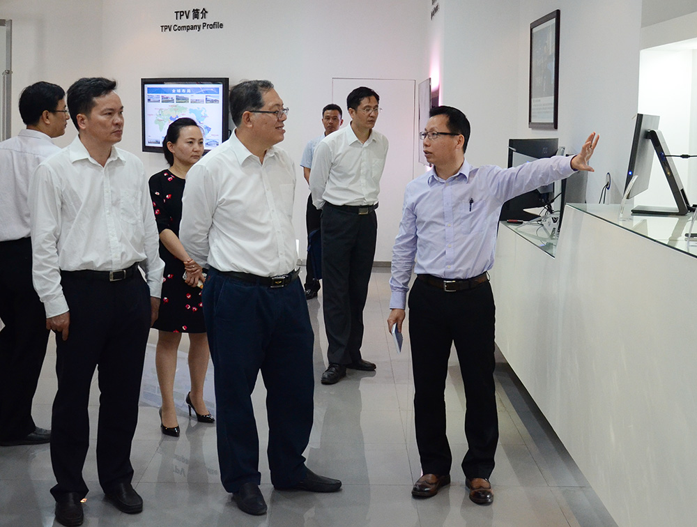 在中國(guó)電子北海產(chǎn)業(yè)園展示廳,北海工業(yè)園區(qū)管委會(huì)主任楊楨向陳剛副主席介紹了以中國(guó)電子北海產(chǎn)業(yè)園為基礎(chǔ)核心的北海電子信息產(chǎn)業(yè)發(fā)展情況,園區(qū)電子制造業(yè)板塊,重點(diǎn)龍頭企業(yè)發(fā)展概況。當(dāng)陳剛副主席得知2017年1—2月,中國(guó)電子北海產(chǎn)業(yè)園實(shí)現(xiàn)產(chǎn)值81.3億元,同比增長(zhǎng)6%;上繳稅收6844萬元(其中新增服務(wù)業(yè)稅收3150萬元),同比增長(zhǎng)523%;陳剛副主席贊揚(yáng)了中國(guó)電子入駐廣西,引領(lǐng)帶動(dòng)了電子信息產(chǎn)業(yè)的跨越式發(fā)展,為提升、優(yōu)化地方產(chǎn)業(yè)結(jié)構(gòu)做了重要的貢獻(xiàn)。陳剛副主席一行參觀調(diào)研了廣西電子信息產(chǎn)品質(zhì)檢中心,冠捷科技顯示器生產(chǎn)線,六禾電子SMT生產(chǎn)線。