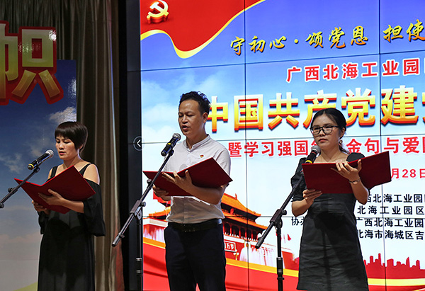 2020年6月28日下午,廣西北海工業(yè)園區(qū)迎慶中國共產(chǎn)黨建黨99周年暨學(xué)習(xí)強國每日金句與愛國詩詞朗誦讀比賽在工業(yè)園區(qū)舉行。中國電子北海產(chǎn)業(yè)園聯(lián)合黨支部組織支部黨員及代表參賽,經(jīng)過精彩角逐,榮獲比賽二等獎。